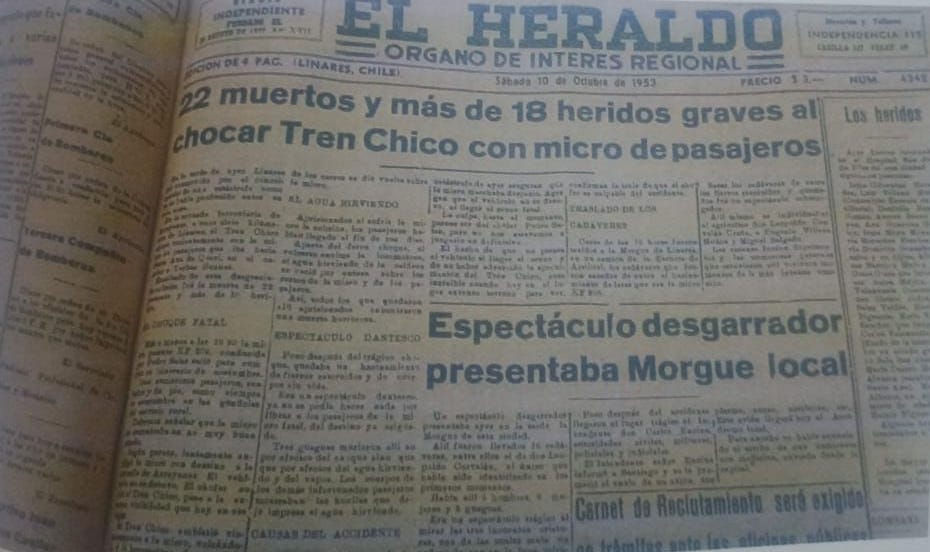 El 09 de octubre se cumplieron 72 años del accidente del tren chico o ramal que vertebraba la provincia de Linares y que viajaba a Panimávida y Colbún. La colisión con una góndola de la época cerca de las 17:00 horas se inscribió en la historia como el segundo más grande en la historia ferroviaria de Chile y como uno de los más trágicos accidentes del siglo XX. Lo anterior, por las personas afectadas por le choque, pero además por el impacto causado por el vapor y agua hirviendo; la que afectó a cientos de personas conmocionando a una comunidad que, según relatos y testimonios recabados por la Fundación Kuramávida, “acudió en masa a ayudar, con vehículos particualres y hasta a pie desde Linares”.