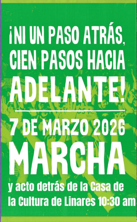 Hacemos un llamado a todas y todes a organizarse en sus territorios para venir el sábado 7 de marzo y acuerpar esta gran movilización, dejando en claro que en el Maule Sur nuestros derechos conquistados y las respectivas políticas públicas que los hacen efectivos, no se tocan, no se cuestionan y no retroceden. Somos nosotras las que sostenemos gran parte de la vida y de la producción nacional con nuestros trabajos, amor y dedicación fuera y dentro de nuestras casas.