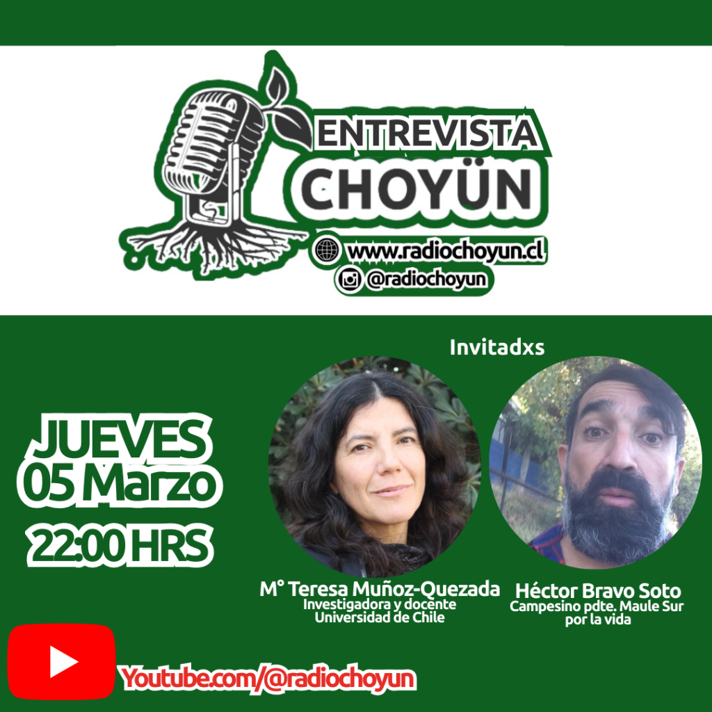 Para mayor información y porque nos interesa profundizar, les invitamos a la #EntrevistaChoyün Conversaremos con la investigadora María Teresa Muñoz-Quezada y el dirigente Héctor Bravo Soto, acerca del informe científico “Coexposición ambiental a pesticidas organofosforados y piretroides y estado de salud mental en comunidades rurales cercanas a una instalación de cría industrial de cerdos”.